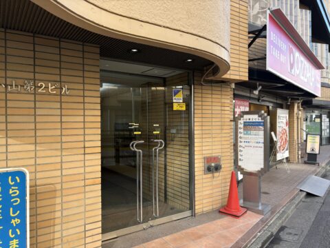 4. 4) 少し進むと左手に「小山第二ビル」が見えてきます。1階の看板を確認し、エレベーターで