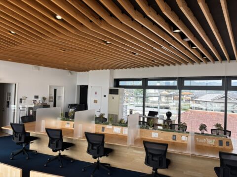 「コワークス365うねの駅前店」も仕切り付きデスクあり。